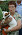 I first prepared the background on white card using Distress inks in shabby shutters and pine needles blended in with cut'n'dry foam and spritzed lightly with water, blotting off excess water with tissue. I then stamped onto acetate with a bramble leaf stamp (anon), several times in Stazon ink in olive green, mustard, pumpkin and eden green overlapping to produce a pleasing effect. The acetate was trimmed to size and fixed, stamped side down, over the ATC background with 4 square copper brads to finish allowing the background to show through.